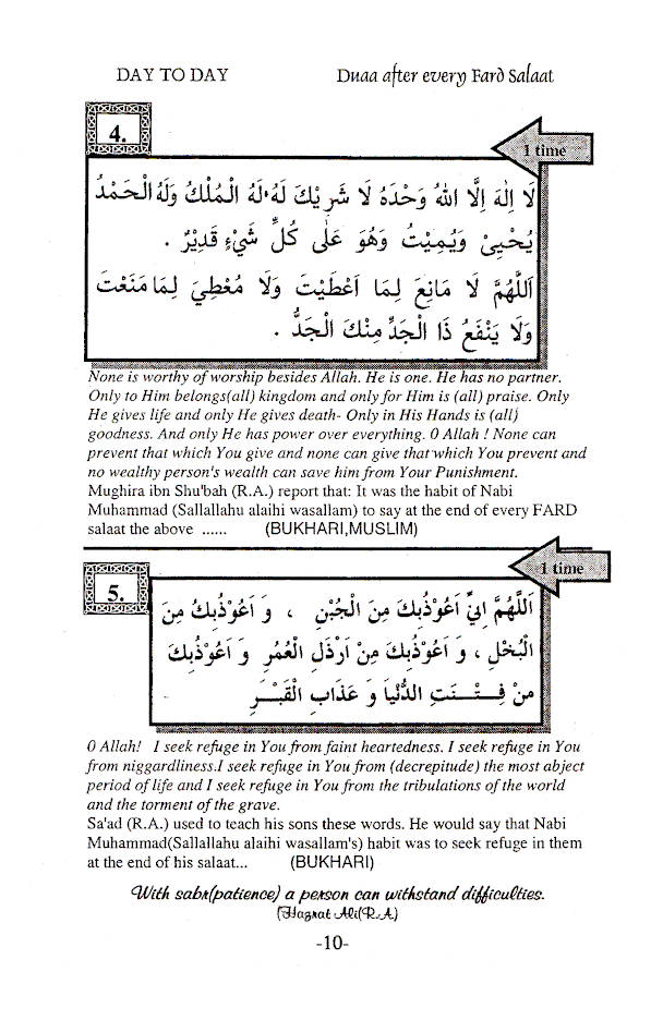This elegant Islamic book presents powerful duas to be recited after daily salah, with clear Arabic text and English translation.