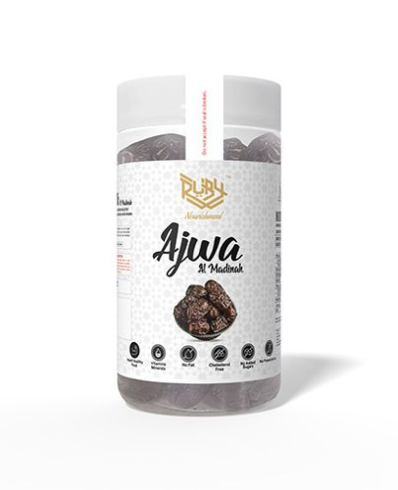 Carefully selected Ajwa dates sourced from Madinah, Saudi Arabia, known for their soft texture and rich taste.