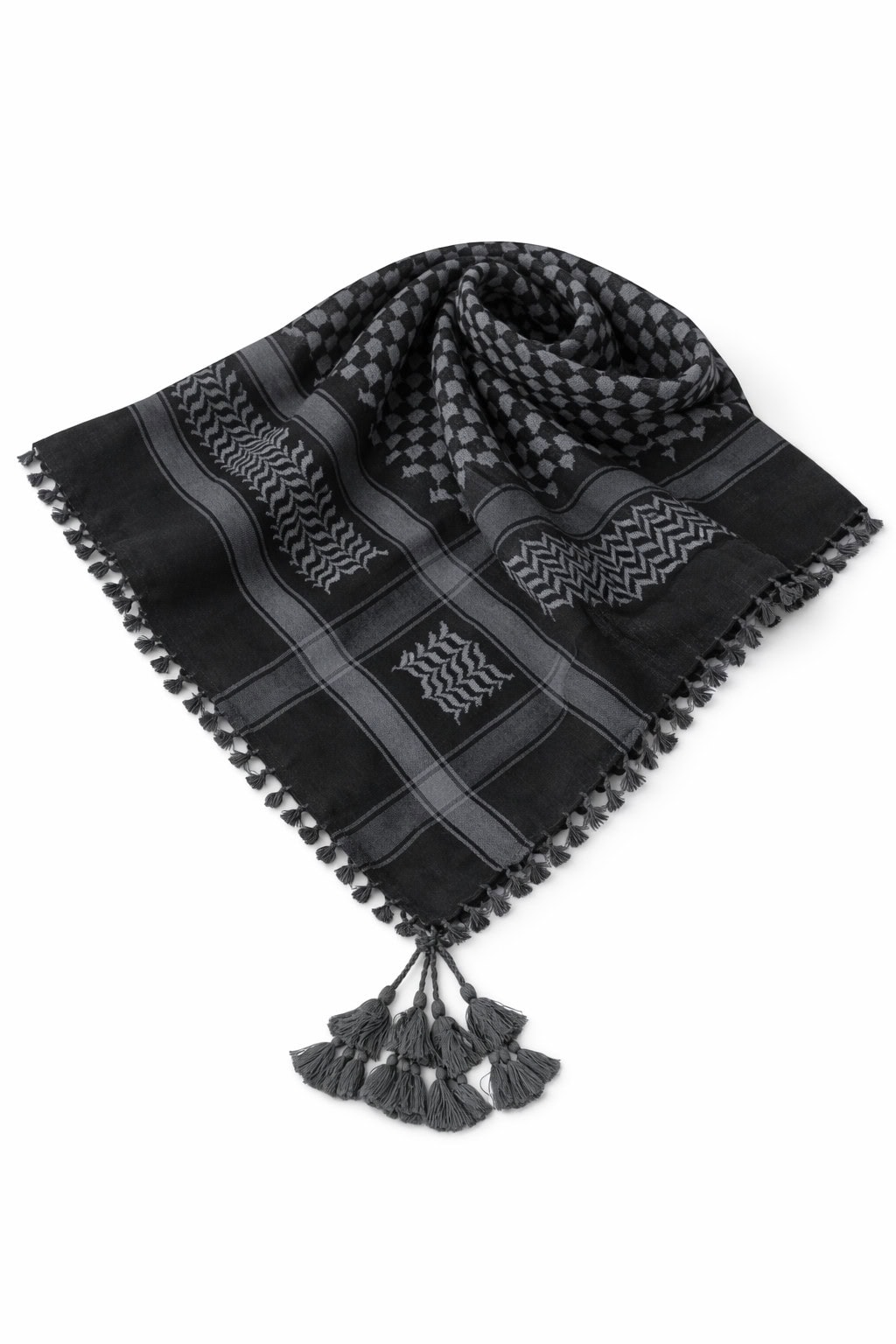 This premium dark grey shemagh scarf showcases the iconic Middle Eastern keffiyeh woven design.