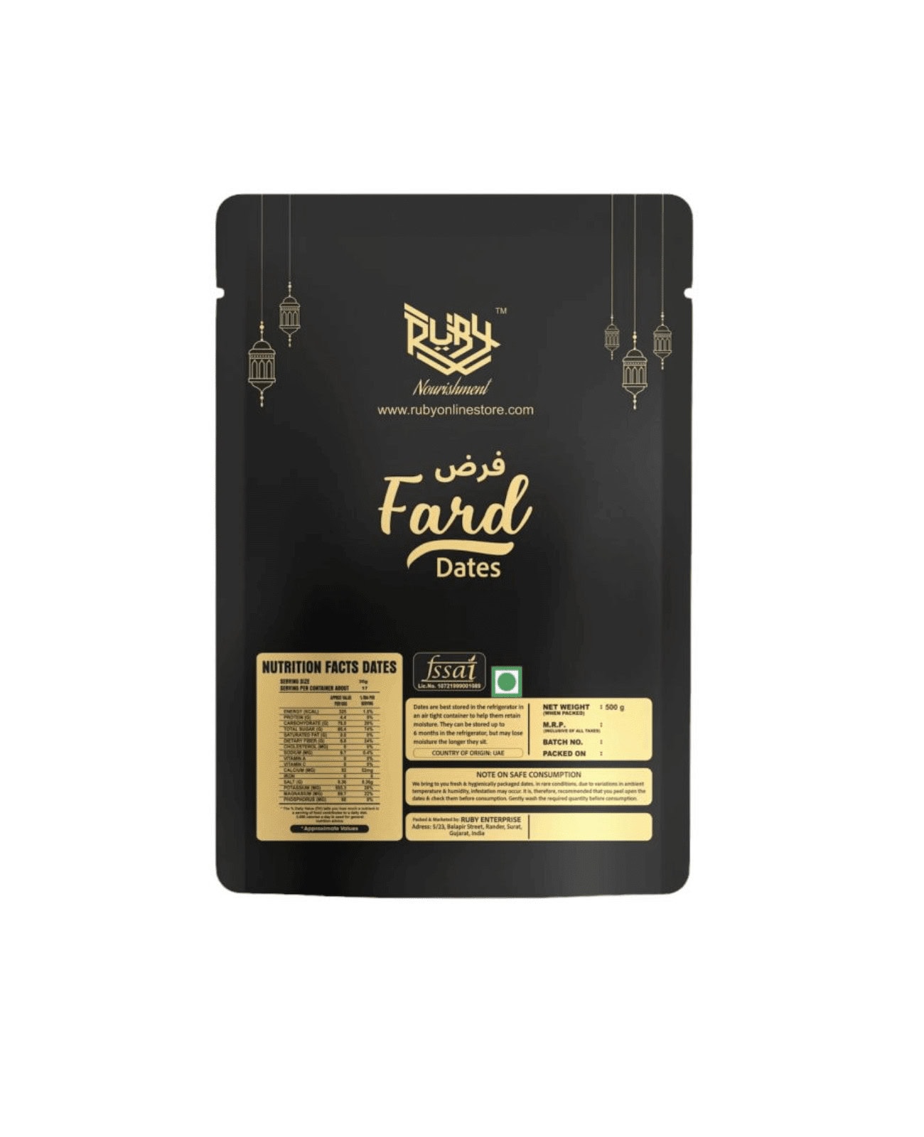 Premium Fard dates with a firm bite and mildly sweet taste, packed as a value combo of two 500 g packs.