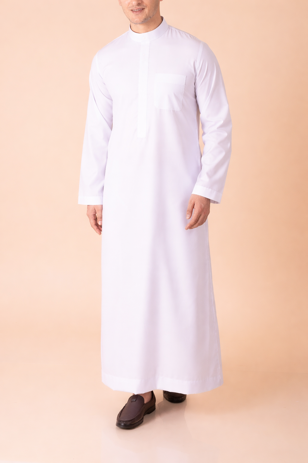 Designed in a crisp pure white shade, this thobe delivers a clean and graceful appearance.