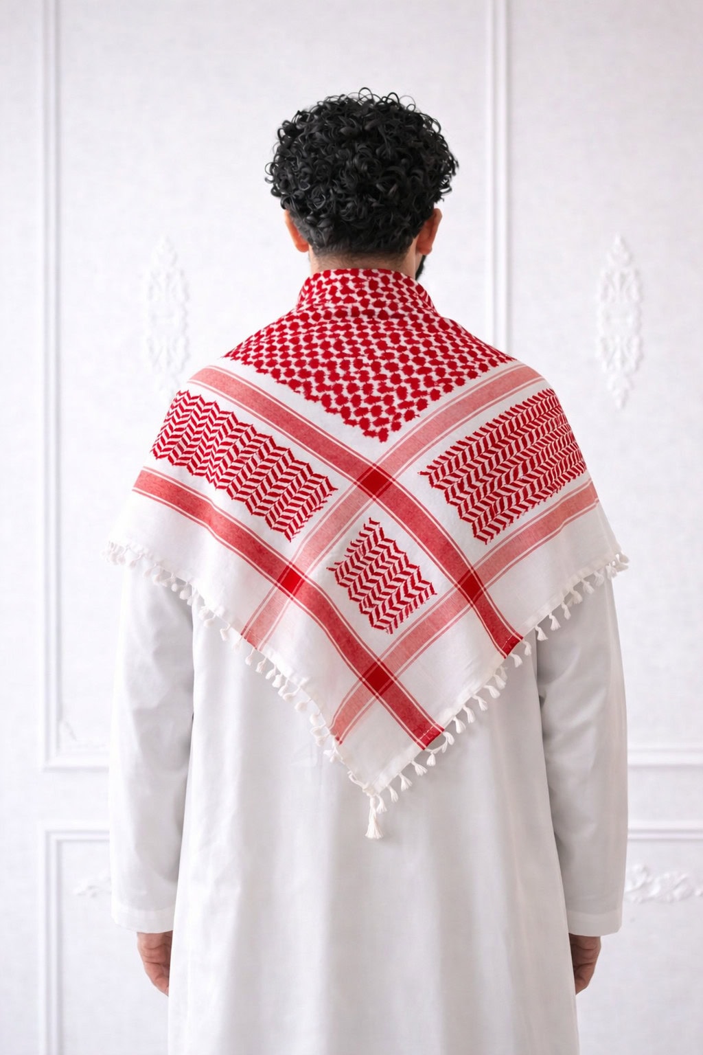Premium Red & White Arabic Shemagh Keffiyeh – Traditional Arabic Head Scarf with Tassel Fringe