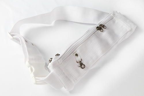 Lightweight white ihram belt with secure zip pouch and adjustable buckle for Hajj and Umrah use.